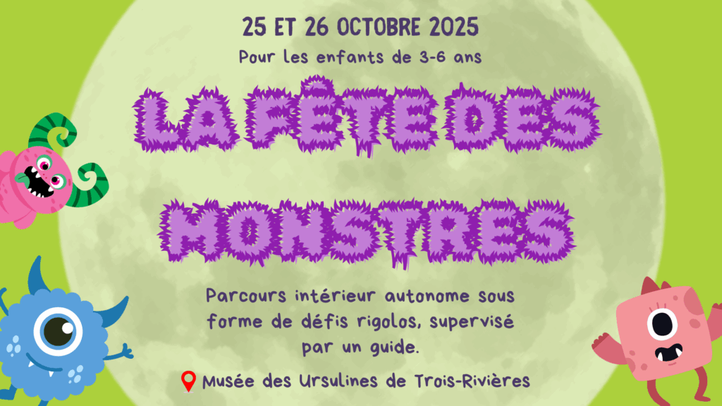 Chaque année, à l’Halloween, toutes les créatures de la nuit sortent pour fêter. Viens fêter avec elles en prenant part à leurs défis rigolos. Sur ton chemin, repère tous les monstres et obtiens une chance de remporter un sac de bonbons! Termine la fête en réalisant ton propre masque de monstre d’Halloween. Parcours autonome familial, avec supervision d’un·e guide animateur·ice. Réservation obligatoire.