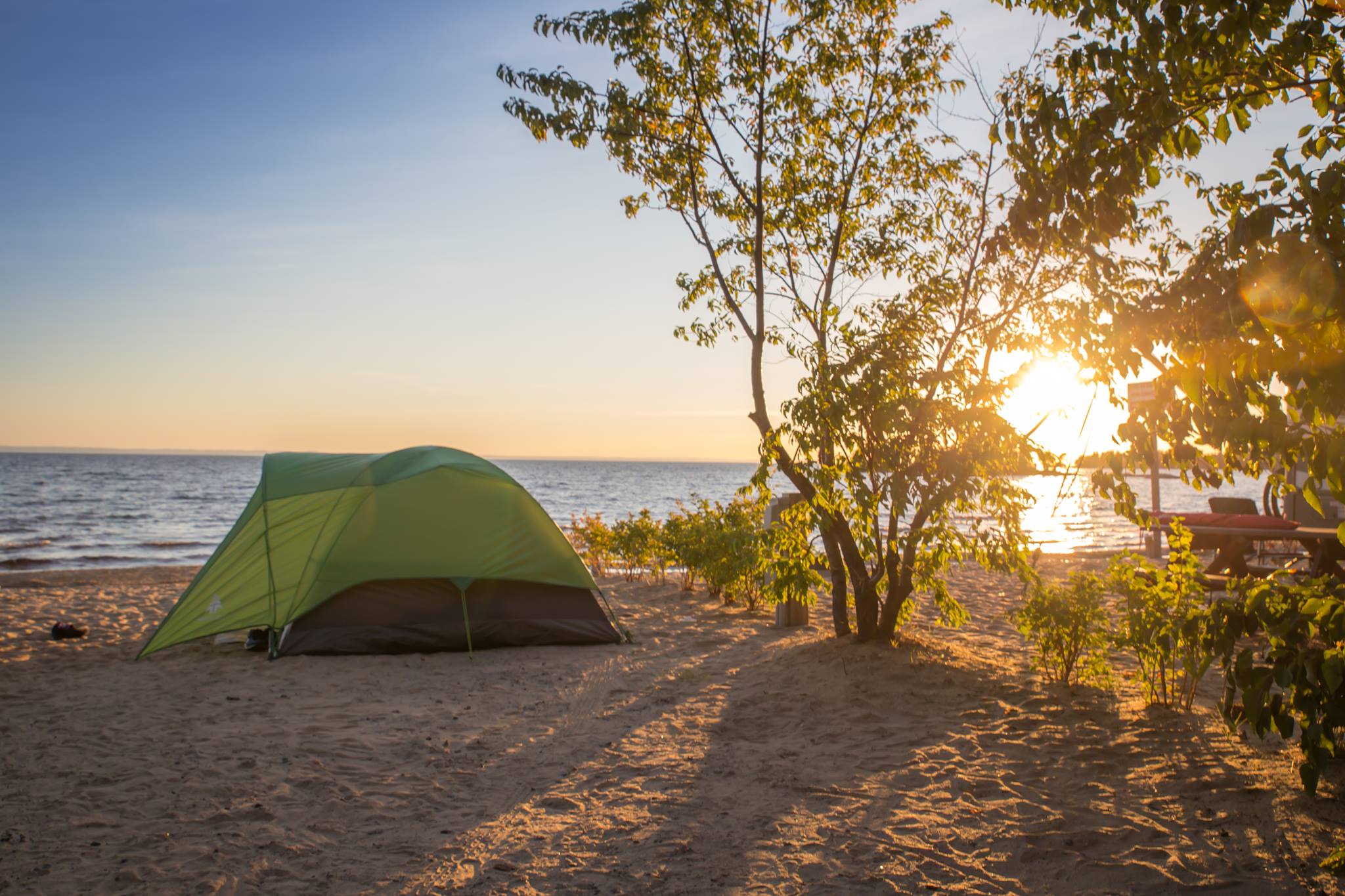 Parc national de la Pointe-Taillon, Péribonka : Excellent article sur ce petit paradis où l’on peut aussi profiter de 10 tentes Huttopia en « prêt-à-camper ».