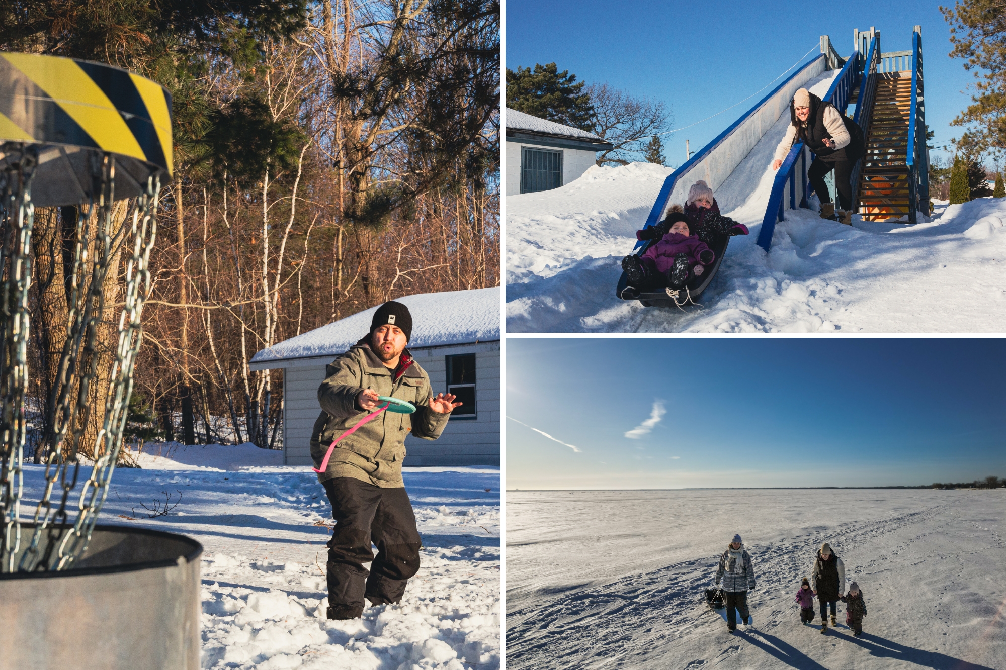 Connais-tu le frisbee golf? On troque les bâtons et les balles pour un frisbee, et le trou pour un genre de panier avec des chaines! Tu peux t’y initier en famille chez Plein air Ville-Joie. On te recommande de porter des mitaines, bien que notre collègue fait à sa tête sur la photo. 😅 Tu peux aussi profiter de la glissade et de la vue magnifique sur le lac Saint-Pierre.