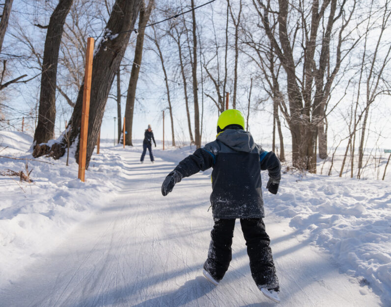 - En plus du patin à l’Île Saint-Quentin, tu peux louer des raquettes, des fatbike et des trottinettes des neiges! Pour revenir avec les enfants, ne manque pas leur programamtion spéciale les 3-4 janvier et 7-8 mars avec des tours de calèche, jeux gonflables, contes et musiciens. 🎉