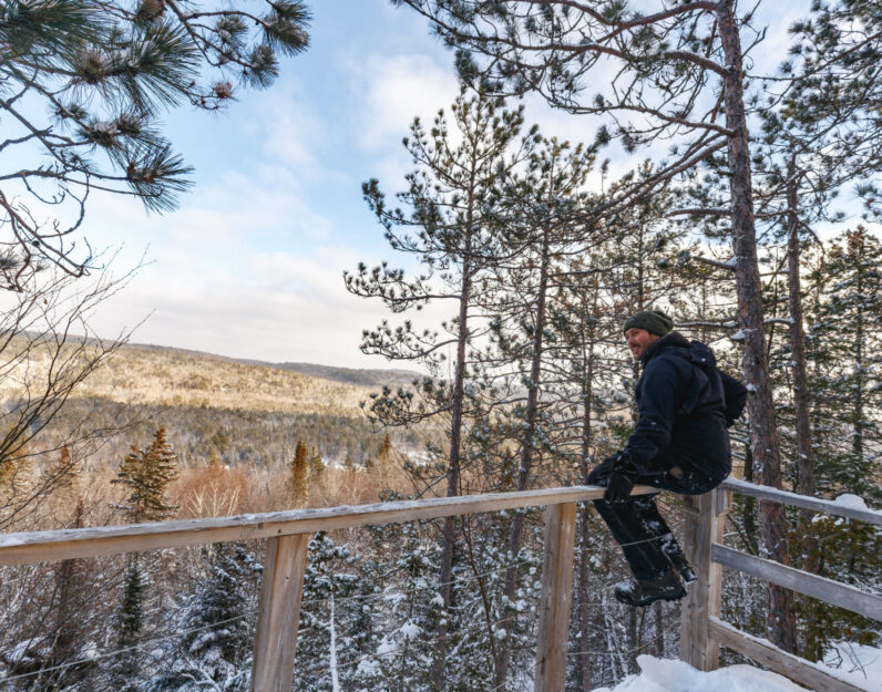 Après un café pour bien se réveiller, on enfile nos vêtements chauds pour aller au Parc récréoforestier de Saint-Mathieu-du-Parc. On se lance dans le sentier d’interprétation de 5 km avec nos raquettes aux pieds. Les paysages sont magnifiques et on profite du belvédère à mi-chemin pour prendre une photo tous ensemble. De retour à l’auberge, on fait un tour dans le jacuzzi. 😁 On se cuisine une bonne bouffe ensemble pour souper, et on se joint à un autre groupe d’ami·es pour jouer à des jeux. Un peu plus relax comme soirée!
