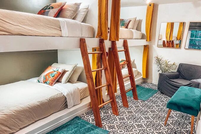 On débarque à l’Auberge Mandala, qu’on remarque facilement avec la murale géante sur le côté du bâtiment! Cette auberge atypique devient notre QG pour le week-end. L’intérieur surprend encore plus : grand salon partagé avec un poêle à bois, une cuisine commune pour préparer le souper en gang et même un jacuzzi extérieur pour se la couler douce! On s’installe dans notre chambre avec lits superposés (ou chambres privées pour ceux qui ronflent 😉). Le soir venu, rendez-vous au resto-bar de l’Hôte Bord, situé directement dans l’auberge. On y trouve des drinks originaux, des mocktails, des cafés funky et un menu tapas à partager. L’ambiance est parfaite et on ne voit pas le temps passer, on est bien contents de dormir juste à côté!