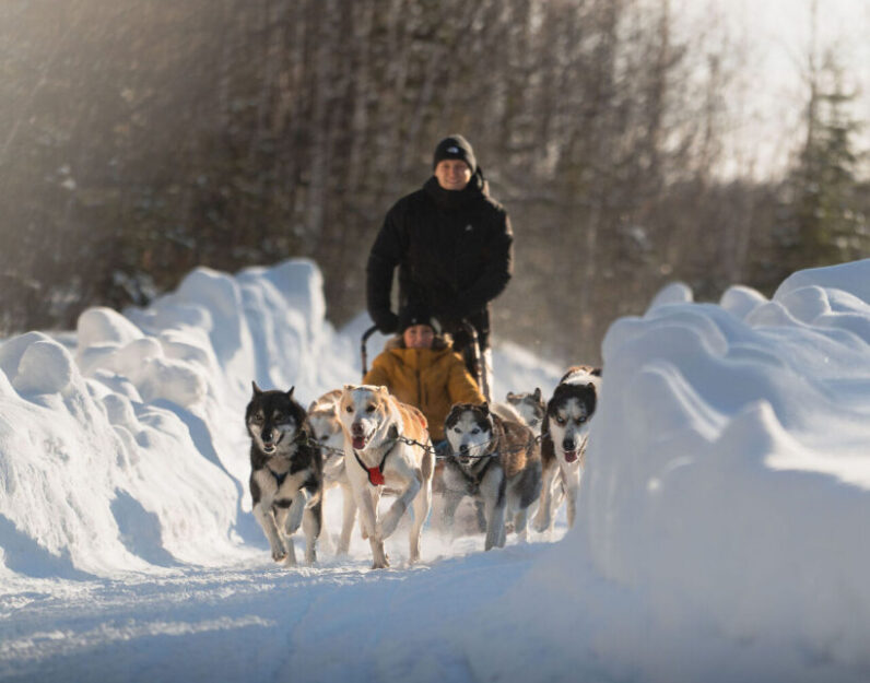 Après un bon déjeuner au resto de l’auberge, on se dirige vers notre première activité de la journée : le traineau à chiens. Trucs de pro (lire ici débutante) : tiens-toi très fort au traineau et prépare-toi à rire un bon coup si tu tombes parce que tu pourrais voir ton être cher, assis confortablement, être emporté par les chiens jusqu’à temps que le guide les arrête 500m plus loin. On a aussi profité de l’anneau glacés pour patiner en après-midi, nettement plus calme comme activité! Le soir, on s’est gâté avec la table d’hôte et on a tout adoré, surtout leur incontournable truite Koulibiac avec la sauce au vin blanc.